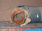 Seit Mitte April werden die Sanitäranlagen im Rathaus, Berliner Platz erneuert. Hier ein völlig verrottetes Rohr, das in der Vergangenheit häufig verstopft war.