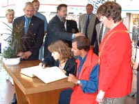 Die Segelweltmeister 1999 in der "Flying Junior Klasse" Susanne und Peter Wanders trugen sich am 30.08.1999 im Goldenen Buch der Stadt Bocholt ein