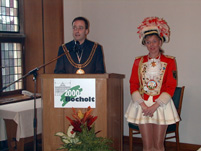 Nette Begleitung hatte Bürgermeister Klaus Ehling, der am Sonntag, 13. Februar 2000, 30 Prinzenpaare aus dem Umland empfing.