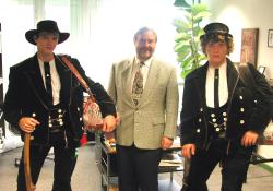Die Wandergesellen Dirk Götzkes und Marcel Mantei von der "Vereinigung der rechtschaffenen fremden Zimmerer- und Schieferdeckergesellen Deutschlands" machten am 22. Juli Zwischenstation in Bocholt. Erster Stadtrat Bernd Hagmayer empfing die beiden jungen Männer im Rathaus und überreichte ihnen das Zehrgeld. Dirk Götzkes ist erst seit rund zwei Monaten dabei. Er ist Tischler und kommt aus dem niederrheinischen Nettetal. Sein Gefährte Marcel Mantei, Dachdecker von Beruf, kommt aus Nienstett in der Nähe von Hannover und hat bereits eineinhalb Jahre "Walz" hinter sich, wie die Wanderschaft im Fachjargon bezeichnet wird.