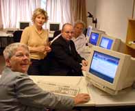 Der Kursraum ist mit neun modernen PCs und zusätzlich mit einem Server und einem Dozenten-PC ausgestattet, die alle miteinander vernetzt sind. Die Stadtwerke haben schnell und unbürokratisch geholfen und eine flotte DSL-Leitung installiert und frei geschaltet, so dass von allen Arbeitsplätzen aus ein schneller Internetzugang gewährleistet ist. Der Raum ist weiterhin mit Druckern und einem Beamer ausgestattet, der die Bildschirminhalte des Dozenten-PCs an die Wand projiziert.