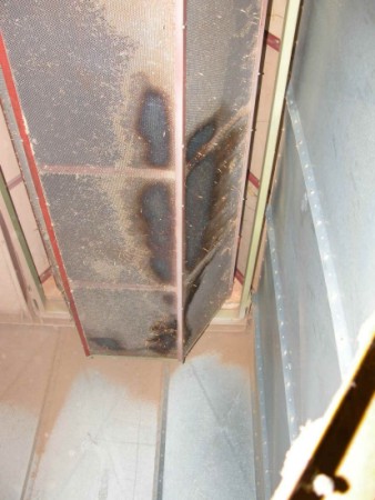 Brandspuren im Inneren der Anlage an einer Siebtrommel