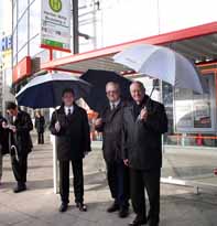 So hat die zentrale Haltestelle "Herten-Mitte/Herten Forum" einen zusätzlichen Wetterschutz erhalten. "Dies ist ein weiterer Baustein zur Erhöhung der Aufenthaltsqualität am Eingangstor zur Stadt", freute sich der stellvertretende Bürgermeister Ludger Schulz bei der Vorstellung des Ausbauprogramms. Schließlich können nun die Fahrgäste der Linien SB 27, 210 und 246 die Ankunft Ihres Busses direkt vor dem unmittelbaren Einstiegsbereich dieser Linien bequem abwarten. "Dies kommt immerhin täglich rund 700 Nahverkehrskunden zugute", fügte Martin Schmidt, Geschäftsführer der Vestischen hinzu.