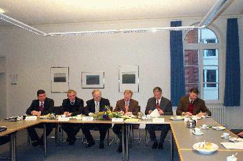 Auf dem Foto 1 von links: Landrat Jörg Bensberg (Ammerland), Oberbürgermeister Alwin Brinkmann (Emden), Landrat Walter Theuerkauf (Aurich), Landrat Bernhard Bramlage (Leer), Landrat Manfred Bergner und Oberkreisdirektor Jürgen Mumdey (beide Wesermarsch).