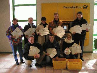 Iserlohn. Für Iserlohn ist es fast schon ein historisches Ereignis: Alle der FIFA angehörenden Fußballverbände von A wie Afghanistan bis Z wie Zypern - es sind 204 weltweit - werden in den nächsten Tagen Post aus der Waldstadt bekommen. Bekanntlich bewirbt sich Iserlohn um die Unterbringung einer Nationalmannschaft während der WM 2006 und hat dafür schon eine ganze Reihe von Aktivitäten entwickelt. Dazu gehört auch eine WM-Standortbroschüre. Am letzten Freitag fanden sich die Mitglieder des Iserlohner Arbeitskreises WM 2006 bei der Hauptpost ein, um sie auf die Reise "in alle Welt" zu schicken. In sechs Sprachen - Deutsch, Englisch, Französisch, Spanisch, Portugiesisch und Italienisch - werden die Fußballverbände gezielt in ihren Landessprachen angesprochen und sollen sich anhand der Broschüre davon überzeugen, dass Iserlohn ideale Trainings- und Unterbringungsmöglichkeiten für eine WM-Mannschaft bietet. Beigelegt ist jeweils ein Schreiben von Bürgermeister Klaus Müller. Darin lädt er die jeweilige Nationalmannschaft, aber auch Fans und Touristen herzlich ein, zur Fußballweltmeisterschaft 2006 nach Iserlohn zu kommen. Über ein Antwortfax haben die Fußballverbände bequem die Möglichkeit, sich mit der Stadt Iserlohn in Verbindung zu setzen. "Diese Aktion ist wahrscheinlich einmalig in Deutschland, aber wir versprechen uns durch diese gezielte Kontaktaufnahme mit den Fußballverbänden eine gewisse Aufmerksamkeit und möchten die Vorzüge Iserlohns als Trainingsstandort für eine Fußballnationalmannschaft noch präsenter machen", klingt der Iserlohner WM-Koordinator Michael Jüdt optimistisch. Jetzt darf gehofft werden, ob sich denn der eine oder andere Fußballverband meldet. "Das wäre doch schon mal ein kleiner Meilenstein auf dem Weg nach Iserlohn", ist auch Sportbüroleiter Ralf Horstmann überzeugt von der Sache. Ein besonderer Dank der Stadt gilt den Übersetzern der Iserlohner WM-Standortbroschüre für ihre Mitarbeit: Anne und Jörg Schöttel (Französisch), Christine Ueberacker-Evans (Englisch), Esther Costa Lopez (Spanisch), Ana Arndt (Portugiesisch), Luigia Tozzi (Italienisch). Sie hoffen natürlich darauf, dass eine "ihrer" Nationalmannschaften den Weg nach Iserlohn einschlägt.
