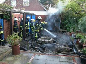 Unmittelbar hinter einer Garage war ein Stapel mit dickem Kaminholz in Brand geraten. Mit dem Schnellangriffsschlauch des Tanklöschfahrzeuges konte das Feuer schnell unter Kontrolle gebracht werden. Das ebenfalls am Einsatzort eingetroffene Löschgruppenfahrzeug LF16 brauchte nicht mehr einzugreifen. Nach ca. einer halben Stunde konnte der Einsatz beendet werden.