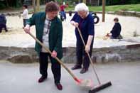 Der Sommer naht - Grund genug für die Spielplatzpaten, städtische Spielplatz hinter der Wohnanlage Schürmannswiese auf Vordermann zu bringen.