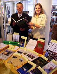 Verlage aus der Region können sich seit Januar anlässlich des Glashaus-Jubiläums in der Stadtbibliothek präsentieren. Derzeit stellt der Mercator-Verlag aus Duisburg seine Werke aus - und wird zugleich Spuren hinterlassen. "Der Verlag war so freundlich und hat uns zum 10-Jährigen einen kompletten Satz aus seinem Verlagsprogramm geschenkt. Das sind insgesamt 61 Bücher", freut sich Petra Toppmöller von der Stadtbibliothek.