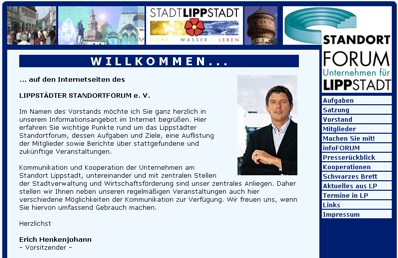 Im Rahmen der ersten Mitgliederversammlung des Lippstädter Standortforums wurde der neue Internetauftritt des Firmenverbunds präsentiert. Unter der einprägsamen Adresse www.standortforum.de können ab sofort Informationen zu dem Netzwerk Lippstädter Unternehmen abgerufen werden. Zusätzlich stehen den Mitgliedern des Standortforums auch umfangreiche Kommunikationsmöglichkeiten zur Anbahnung von Unternehmenskooperationen zur Verfügung.