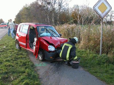 Nach einem schweren Verkehrsunfall wurde die Feuerwehr Norden am 7. Oktober um 14.36 Uhr alarmiert. In der Alarmmeldung wurde als Unfallort Alleestraße in Höhe der Mühle angegeben. Gefunden wurde die Unfallstelle außerhalb des Ortsschildes an der Abzweigung der Straße Mahnland von der Alleestraße.