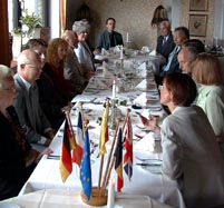 Die Delegationen aus den Partnerstädten mit dem Europäischen Cocktail in der Hand