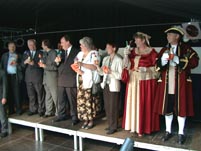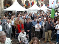 Zahlreiche Gäste verfolgten die Eröffnung des Europäischen Stadtfestes und die Zubereitung des Europäischen Cocktails am 15.6.2000