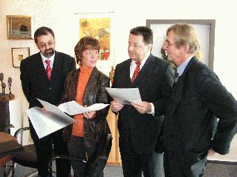 Antrittsbesuch der Regierungspräsidentin in Iserlohn Aber davor hatten Renate Drewke, ihre Referentin Bettina Krusat und Karola Geiß-Netthöfel, Leiterin der Kommunalaufsicht bei der Bezirksregierung und Bezirksplanerin zunächst ein umfangreiches Programm zu absolvieren. Schließlich sollte die Regierungspräsidentin auch sehen, was sich in Iserlohn mit Hilfe der Fördergelder des Landes bereits getan hat und noch tun soll. Erste Station waren die Brabeck- und die Kilianschule in Letmathe. Hier ging es um das Programm “Bunte Schulhöfe”, das in diesem Sommer mit Mitteln aus Landes- und Beschäftigungsförderung gestartet werden konnte. Die Schülerinnen und Schüler ließen es sich nicht nehmen, zur Begrüßung ein Gedicht und ein Lied vorzutragen, sehr zur Freude der Gäste aus Arnsberg. Anschließend ging es zum Haus Letmathe. Hier wurden Renate Drewke die Umbau- und Umzugspläne vorgestellt und Franz-Josef Schlotmann nutzte die Gelegenheit, ausführlich das Konzept des Fördervereins für das Haus Letmathe vorzustellen. Die Regierungspräsidentin zeigte sich beeindruckt, lobte vor allem das bürgerschaftliche Engagement und den Gemeinsinn, der zum Ausdruck komme, und versicherte, dass dieses Vorhaben aus Sicht ihres Hauses besonders förderungswürdig sei. Zurück in Iserlohn ging es zunächst zum Bahnhof. Auch hier wurde Renate Drewke ausführlich über den aktuellen Stand der Dinge informiert. Beim anschließenden Gang durch die Innenstadt nahm sie den Fortschritt bei der Umgestaltung in Augenschein. “Die Fußgängerzone ist wunderschön,” versicherte sie und lobte erneut den Gemeinsinn der Iserlohner, der sich nicht nur ideell, sondern auch finanziell ausdrücke, wie das Beispiel der Anlieger der Wermingser Straße, die sich an den Ausbau-Kosten beteiligen, zeige. Im Iserlohner Rathaus informierte Fachbereichsleiter Friedhelm Kowalski dann abschließend über die Offene Ganztagsgrundschule in Iserlohn. Auch hier gab es Komplimente für die Stadt. Der ganzheitliche Ansatz von Jugend und Schule in Iserlohn sei vorbildlich und ganz im Sinne von Bund und Land, erklärte Renate Drewke. Schließlich war es dann soweit. Im Rahmen eines Pressetermines trug sich die Regierungspräsidentin in das Goldene Buch der Stadt ein und zur großen Freude von Iserlohns Bürgermeister Klaus Müller, Vizebürgermeister Michael Scheffler und dem Ersten Beigeordneten Dr. Peter Paul Ahrens hatte Renate Drewke auch ein Gastgeschenk dabei - zwei Bewilligungsbescheide für die Stadt Iserlohn: der eine für den Weiterbau des Radweges im Baarbachtal in Höhe von 348 700 Euro und der zweite für die weitere Umgestaltung der Innenstadt in Höhe von 462 000 Euro. Zum Abschied bemerkte die Regierungspräsidentin, dass es eben ein Unterschied sei, ob man ein Projekt nur aus den Akten kenne oder ob man es direkt vor Ort erlebe. Ihr sei bei ihrem Besuch in Iserlohn - eine der wenigen Kommunen im Regierungsbezirk, die sich nicht im Haushaltssicherungskonzept befinde - sehr deutlich geworden, dass sich hier noch sehr viel bewegen lasse. Soweit sie könne, werde sie dies unterstützen. |