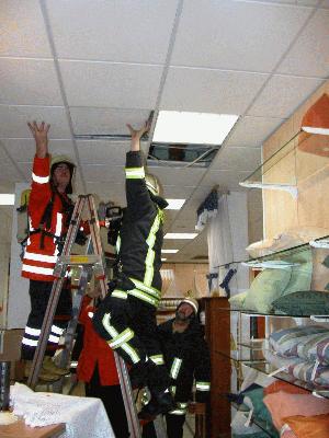 3. Januar, 16.50 Uhr. Auslösung der Brandmeldeanlage in der Textilabteilung des Kaufhauses Ceka, Brandgeruch feststellbar. Die Feuerwehr rückte mit mehreren Fahrzeugen aus. Vor Ort konnte zunächst die Ursache des noch wahrnehmbaren Geruchs nicht festgestellt werden. Erst nach längerem Suchen zusammen mit Fachkräften einer Elektrofirma und Kontrolle mehrerer Leuchtstofflampen in der Zwischendecke konnte ein offensichtlich defekter Flutlichtsrahler als Ursache festgestellt werden.