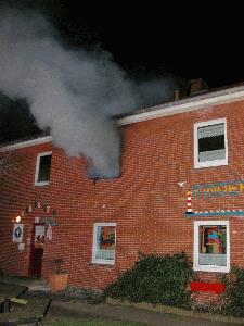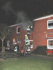 Den ersten größeren Einsatz im Jahr 2005 gab es für die Feuerwehr Norden am 14. Januar um 06.49 Uhr. Es brannte in einem Wohnblock am Hollander Weg. Dichter Qualm kam aus einem Fenster im ersten Obergeschoss, aber auch über dem Dach war Rauch zu sehen. Sofort ließ der Stadtbrandmeister über die Leitstelle weitere Kräfte nachalarmieren. Während die Besatzung des Tanklöschfahrzeugs über den Hauseingang an der Rückseite ins Gebäude eindrang, musste von der Vorderseite über Steckleitern vorgegangen werden. Das Feuer, das sich bereits durch die Zimmerdecke zum Dachboden durchgefressen hatte, war dann schnell unter Kontrolle. Das Ausräumen des völlig ausgebrannten Zimmers und das Belüften des Gebäudes mit dem Überdrucklüfter zogen sich noch einige Zeit hin. Nach gut einer Stunde konnte der Einsatz dann beendet werden.