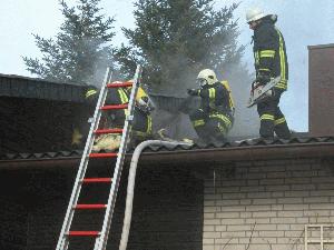 Das Feuer in der Küche konnte schnell gelöscht werden, die Arbeiten im Verlauf der Abzugsrohre gestalteten sich schwieriger. Erst nachdem ein Teil der Deckenverkleidung im Haus geöffnet und von außen ebenfalls Zugang geschaffen worden war, konnte "Feuer aus" gemeldet werden. Die Verqualmung im Haus wurde unter Einsatz eines Überdrucklüfters beseitigt. Nach ca. 1 Stunde konnte die Einsatzstelle verlassen werden. Außer der Feuerwehr war auch eine Mannschaft des Deutschen Roten Kreuzes an der Einsatzstelle.