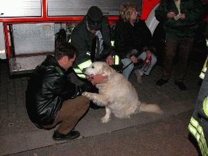 28. April, gegen 22.30 Uhr. Beim abendlichen "Gassigehen" an der Nordseestraße hatte ein Hund seinen Kopf durch einen Metallzaun gesteckt und konnte ohne Hilfe nicht aus der misslichen Lage befreit werden. Die Feuerwehr, die mit dem Rüstwagen anrückte, trennte einige Streben des Zauns mit dem Bolzenschneider durch und erlöste das Tier aus der Gefangenschaft. Ein herbeigerufener Tierarzt konnte keine Verletzungen feststellen. Das glückliche Tier bedankte sich bei einigen Helfern durch "Pfötchengeben".
