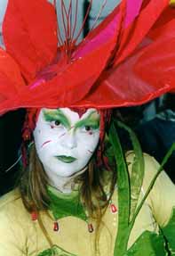 Beim Blumenmarkt verteilt die Stelzenläuferin "Amaryllis" kleine Geschenke