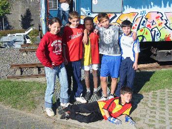 Fußballturnier an den Bahnwaggons Dröscheder Feld Jungen und Mädchen traten in zwei Altersklassen (acht bis dreizehn Jahre und dreizehn bis achtzehn Jahre) an. Jedes Team durfte fünf Spieler plus zwei Ersatzspieler aufstellen. Tatkräftig unterstützt wurden die Teilnehmer von etwa achtzig bis einhundert fußballbegeisterten Zuschauern und Fans, die den Spielfeldrand säumten. Nach vielen spannenden Vorrundenspielen war die Entscheidung bei den Dreizehn- bis Achtzehnjährigen sehr knapp. Im Endspiel gewannen die “Nussberger Kicker" gegen den “FC Barca" mit 1:0. Bei den Acht- bis Dreizehnjährigen schossen sich die “Streetfighter" an die Spitze, so dass sich die “tödlichen Marokks" mit dem zweiten Platz zufrieden geben mussten. Veranstalter des Turniers waren das Sozialraumteam Mitte der Stadt Iserlohn, vertreten durch Streetworker Frank Müller, und der CVJM Iserlohn, vertreten durch die hauptamtliche Mitarbeiterin Sandra Beuter. Unterstützt wurden beide durch Streetworker Bernd Schulte und einen Praktikanten der Stadt.