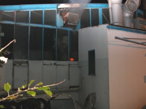 Nach Überwindung eines massiven Zauns konnte an der Rückseite des Gebäudes Feuerschein und Qualm aus einer Lüfteröffnung entdeckt werden. Zugang zu dem Gebäude war nur unter schwerem Atemschutz und nach gewaltsamen Öffnen einer Hallentür möglich. Es brannte im Lüfterkanal einer älteren Lackierkabine, in der hauptsächlich Kleinteile für die Lackierung vorbereitet werden. Das Feuer war dann schnell unter Kontrolle. Die starke Verqualmung der Halle wurde mit zwei Überdrucklüftern beseitigt. Gegen 4 Uhr konnte das letzte Fahrzeug "Einfahrt" melden. Vor Ort waren auch Polizei und Deutsches Rotes Kreuz.