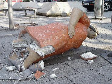 Eigentlich sollten die Figuren auf dem Iserlohner Marktplatz den Betrachtern einfach nur Freude und Vergnügen bereiten. Schade, dass so etwas offenbar nicht möglich ist! Zurzeit kann noch nicht gesagt werden, ob die Figur wieder hergestellt werden kann. |