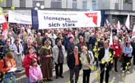 So gut besucht wie schon lange nicht mehr war die Maikundgebung auf dem Marktplatz am 1. Mai. Mehrere hundert Arbeitnehmer waren in Begleitung von Bürgermeister Dr. Uli Paetzel, der Landtagsabgeordneten Margret Gottschlich und der Europaabgeordneten Jutta Haug von Disteln über die Kaiserstraße bis in die Innenstadt.