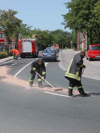 Mit Bindemitteln wurde die Rutschgefahr beseitigt und nach kurzer Zeit konnte die Einsatzstelle wieder verlassen werden.