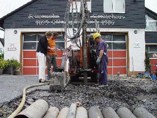 Feuerwehrgerätehaus Drüpplingsen wird mit Erdwärme geheizt Das Feuerwehrgerätehaus im Iserlohner Ortsteil Drüpplingsen wurde bisher mit Nachtstromspeicher-Heizungen beheizt. Diese Heizungen waren zum großen Teil defekt. “Da das Heizen mit Strom nicht sonderlich ökologisch ist, haben wir nach einer alternativen Heizmöglichkeit gesucht”, so Katrin Brenner, Leiterin des Kommunalen Immobilien Managements der Stadt Iserlohn (KIM). Für eine herkömmliche Gasheizung fehlte die Gasversorgung, für Öl bzw. Flüssiggas konnte keine Lagerfläche gefunden werden. Daher entschieden die Fachleute beim KIM, für dieses Gebäude eine Sole/Wasser-Wärmepumpe zu errichten. Die Wärmepumpenanlage einschließlich des nachgeschalteten Rohrsystems mit Heizkörpern wurde bereits im Dezember 2005 eingebaut. Zurzeit wird die Erdsondenanlage installiert. Dabei werden voraussichtlich drei Sonden bis zu einer Tiefe von etwa sechzig Metern gebohrt. Diese Tiefe garantiert einen gleichmäßigen Wärmeertrag unabhängig von der Witterung (Sommer wie Winter). Die Bohrarbeiten dauern zirka zwei Wochen, wobei dies allerdings stark abhängig ist vom Untergrund, der bei den Bohrarbeiten vorgefunden wird. “Durch die Wärmepumpenanlage sollen die Energiekosten des Feuerwehrgerätehauses deutlich gesenkt werden. Wir rechnen mit einer Ersparnis von rund 2.300 Euro pro Jahr,” erläutert Katrin Brenner.