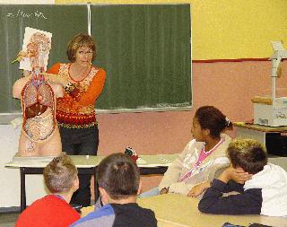Andrea Götz, Ärztin des Gesundheitsamtes, sprach mit den Schülern der Klasse sechs über die Auswirkungen des Rauchens auf den Organismus, insbesondere die schädlichen Auswirkungen auf Organe wie Zunge, Kehlkopf, Bronchien und Lunge. Rollenvorbilder, Imitationsverhalten, verschiedene Phasen des Rauchens (Eingangsphase, Experimentierstadium, Gewöhnungsphase) sowie die psychische und körperliche Abhängigkeit wurden dargestellt und besprochen. Ein weiteres Thema waren mögliche Folgekrankheiten und bleibende Schäden durch Rauchen. Abschließend diskutierte Andrea Götz die Vorteile des Nichtrauchens mit den Schülern.