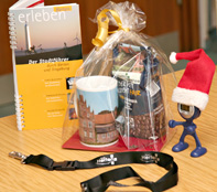 Wie wäre es mit einem Set aus fair gehandelten Herten-Kaffee und einer Kaffeetasse mit dem Wasserschloss darauf? Oder einem kleinen Wecker, der mit seinem biegsamen Armen und Beinen für manch eine sportliche Einlage gut ist? Wir haben für Sie eine Übersicht zusammen gestellt: