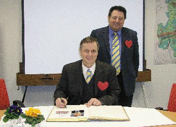 Zu dieser Meldung können wir Ihnen folgendes Medium anbieten: Eintrag ins Goldene Buch der Stadt: Regierungspräsident Helmut Diegel mit Bürgermeister Klaus Müller