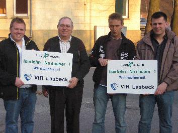 Iserlohn - Na sauber! - VfR Lasbeck übernimmt Patenschaft Der große Aktionstag “Iserlohn - Na sauber!” findet nur einmal im Jahr statt. Aber es gibt Mitbürger, die sich mit einer Patenschaft auch außerhalb dieses festenTermins um die Sauberkeit eines bestimmten, selbst gewählten Teils von Iserlohn kümmern. Zehn solcher Patenschaften bestehen bereits, wobei der Iserlohner Norden besonders stark vertreten ist. Nun wird aber der Süden gestärkt: Der VfR Lasbeck will sich zukünftig auch unabhängig vom Aktionstag besonders um den Ortsteil kümmern, in dem er zu Hause ist. Dokumentiert wird die Patenschaft durch das Anbringen von zwei Schildern, die auf das Engagement der Lasbecker Sportler hinweisen. Wer selbst eine solche Patenschaft übernehmen möchte oder sich am diesjährigen Aktionstag am Samstag, 24. März, beteiligen will, kann sich in der Abteilung Natur und Umwelt der Stadtverwaltung anmelden und weitere Informationen erhalten. Dirk Lachmuth, Tel. 02371 / 217-2941, und Jürgen Fiedler, Tel. 217-2948, stehen dort für Auskünfte zur Verfügung. Ausführliche Infos gibt es auch im Internet auf der städtischen Homepage unter www.iserlohn.de |