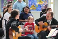 Jeder der 22 Schülerinnen und Schüler stellte kurz mit eigenen Worten ihr oder sein Bild vor. Danach konnten die Besucher bei Beatles-Musik die farbenfrohen Kunstwerke bestaunen. Im Rahmen des vier-wöchigen Projekts malten die Kinder im Kunstunterricht die Bilder, schrieben im Deutschunterricht kleine Texte, die die Bilder erklären und zu einer Geschichte zusammenfassen, und übten im Musikunterricht die beiden Lieder ein.