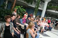 Gemeinsam mit 22 jungen Künstlern, Schülern der 6. Klasse der Christy-Brown-Schule, hat Bürgermeister Dr. Uli Paetzel die Ausstellung „Yellow Submarine“ in der Rotunde des Glashauses eröffnet. Passend zu den Bildern und Collagen sangen die Christy-Brown-Schüler zwei Lieder, das Lied vom gelben Unterseeboot und „Ain't She Sweet“.