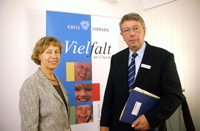 Schul-Dezernent Prof. Dr. Leo Peters begrüßt die neue Schulleiterin des Berufskollegs Viersen, Gisela Werner.
