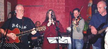 “Die Konsorten” - Irish Folk im JuZ Karnacksweg in Iserlohn “Die Konsorten” hatten ihren ersten Auftritt auf dem Wispa-Festival 2006. Seitdem gaben sie mehrere Konzerte im heimischen Raum. Seit Anfang des Jahres gehört auch Nadjenka Wohlfahrt zur Band. Sie ist auch Mitglied des Jungen Orchesters NRW und sorgt mit ihrer Geige für einen noch stärkeren “folkigen“ Akzent. Seit Kurzem werden die “Konsorten” durch Hannes Alberts am Bass verstärkt. Andreas Martin, Schlagzeuger, spielt schon seit Ende der Siebziger Jahre in verschiedenen Bands im Iserlohner Raum (Zeus, Almost Human, The Milky Way). Ingmar Temp, Gitarrist und Sänger, ist vielen Iserlohnern durch sein Mitwirken bei Vanishing Flowers und Loco Mosquitos bekannt. Harry Hamann (Gitarre, Bouzouki, Gesang) und Hannah Knaup (whistles und Querflöte), beide auch Mitglieder von Irish Maiden, können bei den “Konsorten” ihre Vorliebe für akustische Folkmusik ausleben. Das Repertoire der Gruppe reicht von traditionellen tunes über englisch-irische Folksongs und Balladen bis zu Rockstücken, die in eigenwilliger Weise “folkig“ arrangiert werden. Eintrittskarten zum Preis von fünf Euro gibt’s im JuZ Karnacksweg. |