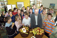 Zu dieser Meldung können wir Ihnen folgendes Medium anbieten: Zonta Frauen spenden 5.000 Euro und einen Korb Äpfel übergaben die Vorsitzende der Zonta Frauen, Marina Hammes (2.v. links) und Stellvertreterin Andrea Baumeister (rechts) an die Franziskus-Schule und das Don-Bosco-Heim. Schulleiterin Theresia Huber (links) und Heimleiter Ernst Oswald freuten sich mit den Schülern der Förderschule.