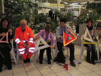 “Autopanne - was dann?” - VHS-Veranstaltung informierte über Soforthilfe am Fahrzeug Was tun, wenn man eine Autopanne hat? Ganz klar: Warnblinklicht einschalten, Warnweste anziehen und Warndreieck aufstellen. Bei Punkt drei haperte es schon bei einigen der fünf Herren und sieben Damen. Sogleich wurde das Aufklappen des Dreiecks geübt. Und siehe da, die Schnellste war eine Dame. Im Anschluss wurde die Funktion eines “Reifenpiloten“ erklärt und ein Radwechsel live vorgeführt. Auch das Thema “Batterie überbrücken“ fehlte nicht. “Überbrückungskabel - so was habe ich auch, aber ich weiß nicht, was ich damit machen soll“, kam ein Geständnis aus dem Teilnehmerkreis. Kein Problem, bis ins Detail wurde erklärt, welches Kabel wohin gehört. In der Pause konnten die Teilnehmer bei kleinen Erfrischungen den Fachleuten zahlreiche spezielle Fragen stellen. Am Ende bekam jeder eine Teilnahme-Urkunde überreicht. |