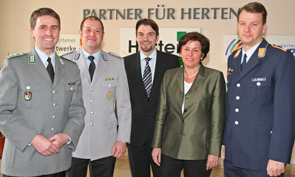 Bundesverteidigungsminister Dr. Franz Josef Jung möchte die Zusammenarbeit von Bundeswehr und ziviler Bevölkerung verstärken und ausdehnen. Im Rahmen dieser Zivil-Militärischen-Zusammenarbeit (ZMZ) traf sich Hertens Bürgermeister Dr. Uli Paetzel und Fachbereichsleiterin Annegret Sickers mit dem Leiter des Kreisverbindungskommandos Recklinghausen Oberstleutnant d.R. Martin Gerdes, Oberstleutnant d.R. Prof. Dr.-Ing. Mike Gralla und Sven Hill, Hauptmann d.R..