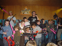 Die Kinder stürmten mit aufblasbaren Gitarren die Bühne und rockten, bis der Boden bebte. "Mit den ganzen Kindern auf der Bühne zu stehen und die Begeisterung zu erleben, war ein tolles Erlebnis", so Onkel Tom, Sänger der Band Schmerzfrei. Die Mönchengladbacher Band hatte einige Kinderlieder verrockt und diese im Jugendtreff Kindern im Kindergarten- und Grundschulalter präsentiert. Die Begeisterung hielt bei den Kindern auch nach dem Konzert noch an. Lautstark forderten sie eine Zugabe und holten sich von den Musikern Autogramme. Auch die Veranstalter waren zufrieden: Das nächste Kinderrockkonzert kommt bestimmt!