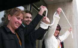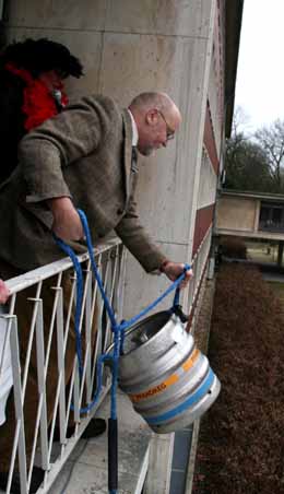 In Fesseln musste das Stadtoberhaupt Prinzessin Patricia ins Glashaus folgen, wo er sich mit einem Fass Bier freikaufen durfte. Anschließend feierten die Hertener Jecken mit Polonaise und allem, was zu einer ordentlichen Weiberfastnachts-Feier dazugehört.