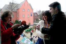Es ist gute Tradition, dass auch in Herten an Weiberfastnacht das Rathaus gestürmt wird. Doch es müssen die stürmischen Wetterbedingungen gewesen sein, die die Gruppe vor dem Rathaus, die sich das närrische Treiben anschaute, in diesem Jahr sehr gering ausfallen ließ.