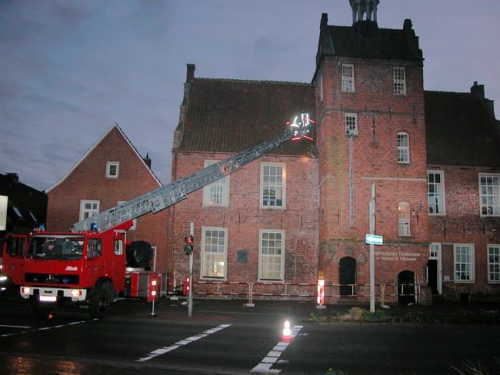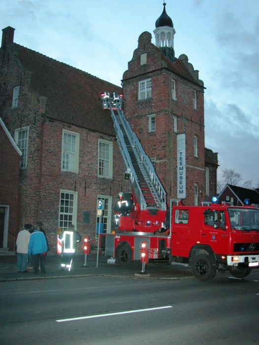 Der 1. März brachte der Feuerwehr Norden mehrere, wenn auch kleine, Einsätze. Um 17.58 Uhr wurde die Drehleiter alarmiert. Beim Teemuseum am alten Rathaus hatten sich Dachpfannen gelöst und waren auf die Straße gestürzt. Die Besatzung der Leiter ersetzte einige Ziegel und konnte dadurch den Schaden beheben.
