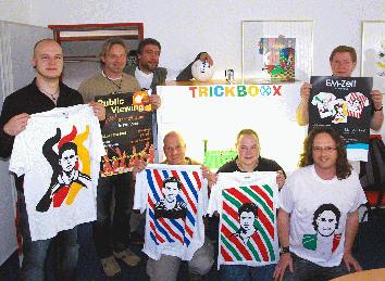 Je nachdem, welche Teams am jeweiligen Tag gegeneinander antreten, können die Jugendlichen T-Shirts mit den Porträts ihrer Fußball-Idole aus den beteiligten Nationalmannschaften bemalen (Kostenbeitrag zwei Euro je T-Shirt).