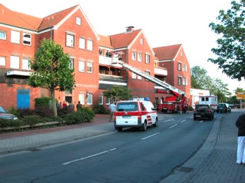 Bei einem Notfalleinsatz am Abend des 19. Juni stand der Rettungsdienst vor der Aufgabe, einen schwergewichtigen Patienten aus dem 2. Obergeschoss eines Hauses an der Dammstraße zum Rettungswagen zu transportieren und forderte über die Leitstelle die Unterstützung durch die Drehleiter der Feuerwehr an.