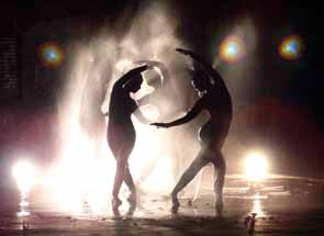 Schauspieler, Seiltänzer und Tänzer um Roberto Corona verkörpern fantastische Geschöpfe aus Tanz, Licht und Wasserwolken mit eigens dafür komponierter Musik. Alles ist viel größer als die Wirklichkeit: „Tempus fugit“ - die Zeit vergeht!