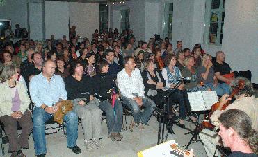 Die Organisatoren in Lengerich, Steinfurt, Gravenhorst, Greven und Ibbenbüren ließen sich hingegen nicht entmutigen und disponierten, soweit es möglich war, schnell um. In Lengerich wurde kurzerhand eine Schulaula geräumt, die dann den Kleinkünstlern eine Bühne bot, auf der sie trocken ihr durchaus noch in großer Zahl erschienenes Publikum bestens amüsieren konnten. Im DA, Kunsthaus Kloster Gravenhorst verlegte man die italienische Nacht vom Innenhof ins Gebäude – es war nicht schwer, sich mediterrane Stimmung zu denken, so temperamentvoll spielte die Gruppe „Ombre di Luci" auf.