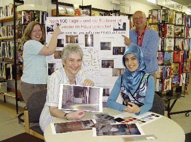 Der “Count-down” für die Rückkehr der Bücherei ins Haus Letmathe läuft Derzeit laufen im Büchereicontainer an der Hagener Straße die Arbeiten für den Umzug bereits auf Hochtouren. Neben dem üblichen Tagesgeschäft planen die Mitarbeiter zurzeit auch die Einrichtung ihrer neuen Räume. Da wird viel gerechnet und ausprobiert. Im Container ist eine Schautafel ausgestellt, auf der aktuelle Bilder von der Baustelle und den Büchereiräumen im Haus Letmathe zu sehen sind. Ein Einrichtungsplan zeigt, wie alles einmal werden soll. Neue Regale sind bereits bestellt. Sie können vor allem flexibler und benutzerfreundlicher eingesetzt werden. Helles Buchenholz, Weißaluminium kombiniert mit roten Elementen und neue Sitzmöble sollen künftig farbliche Akzente setzen. Alle Farben von Wänden, Fußboden und Möbeln sind dann aufeinander abgestimmt. "Die neue Bücherei wird ein Schmuckstück für Letmathe", ist Büchereileiter Ulrich Pagenstecher überzeugt. "Wir tun derzeit alles dafür, dass die Letmather im Haus Letmathe eine nach modernsten Gesichtspunkten eingerichtete Bücherei bekommen." |