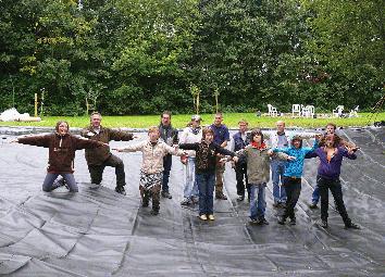 Zu dieser Meldung können wir Ihnen folgendes Medium anbieten: Das “Gartenteich-Team” nach dem Verlegen der Teichfolie