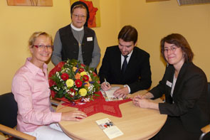 Dr. Anette Borchert, Palliativmedizinern, Leiterin der Palliativstation und Erste Vorsitzende des Förderkreises, stellte noch einmal dessen Bedeutung heraus. Palliativmedizin sei sehr personal-, zeit- und somit kostenintensiv. Diese würden jedoch nur zu einem Teil von den Krankenkassen übernommen. „Was uns überwältigt, ist die Spendenbereitschaft der Bürger. Wir bekommen viele großzügige Zuwendungen, aber auch nette Zeilen und anerkennende Worte.“ Doch um die Arbeit dauerhaft auf ein solides finanzielles Fundament zu stellen, Fort- und Weiterbildungen zu finanzieren und ein Netz von qualifizierten ehrenamtlichen Mitarbeitern aufzubauen, bräuchte man viele Mitglieder im Förderverein, so die Vorsitzende. Einer Befürchtung trat sie gleich entgegen: „Viele glauben, eine Mitgliedschaft sei mit einer Fülle von Verpflichtungen verbunden. Das ist aber nicht so.“ Natürlich freue man sich über jeden, der zu bestimmten Anlässen, etwa einer Benefizveranstaltung oder einem Tag der offenen Tür, bestimmte Aufgaben übernehmen würde. „Aber die Mitarbeit beruht allein auf Freiwilligkeit.“